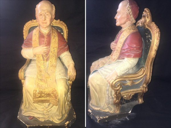 Statue en plâtre de la 2ème guerre mondiale du Pape Pie XII , signé Albert Mou.