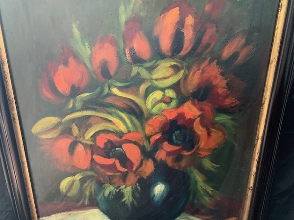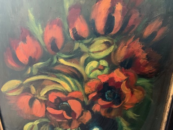 Huile sur toile : Bouquet de tulipes, signée en bas à gauche